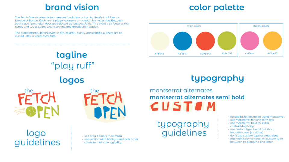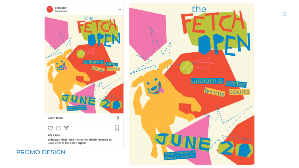JUNIOR STUDIO SPRING 205 For this assignment, I had to create a mock fundraiser. I made a sports tournament fundraiser for the Animal Rescue League of Boston called “The Fetch Open.”