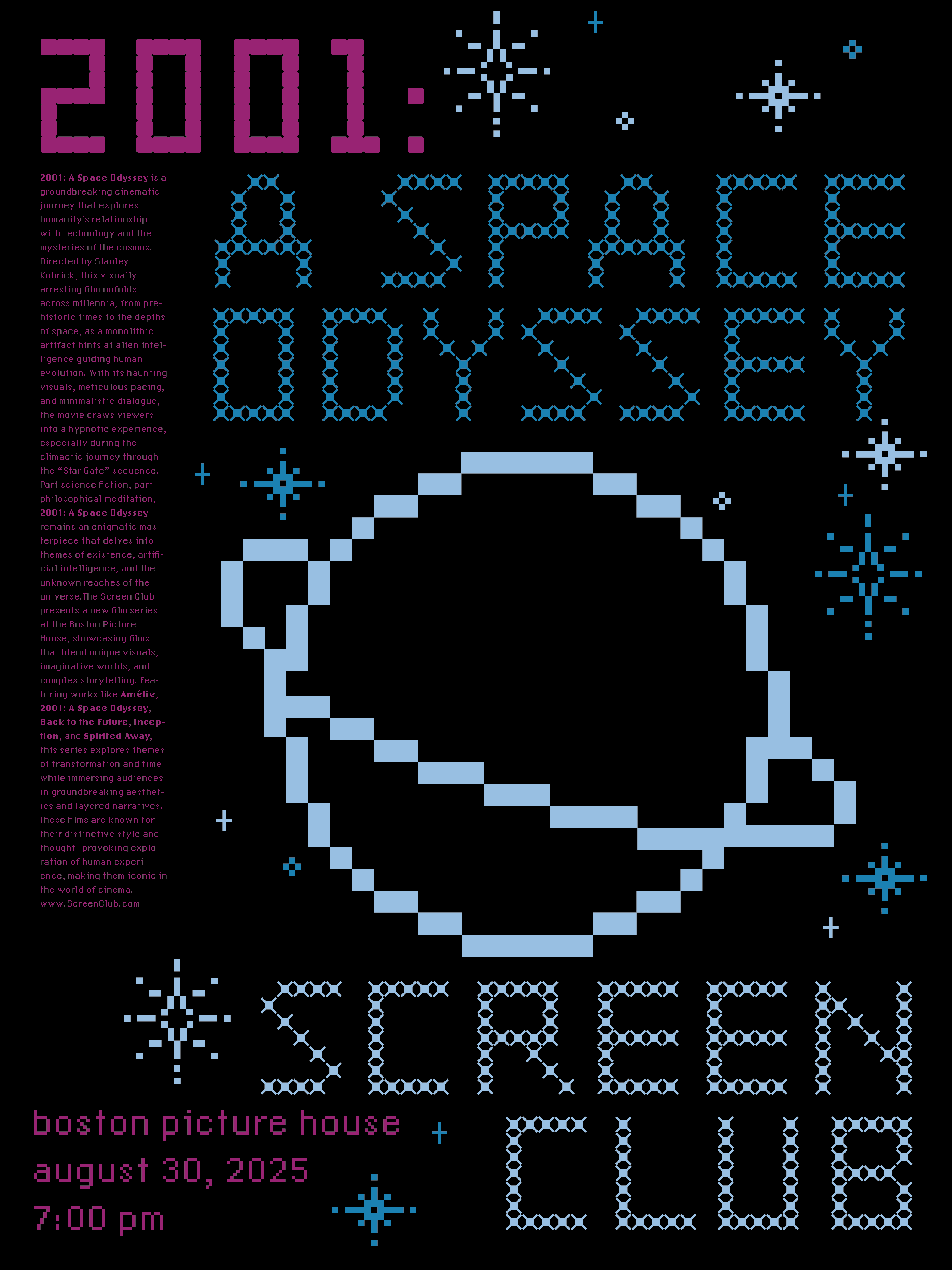 For this assignment, I had to make a cohesive poster series advertising showings of films. I tried out a few options, but landed on a pixelated and colorful style. Swipe through the photos to see the whole set of posters.